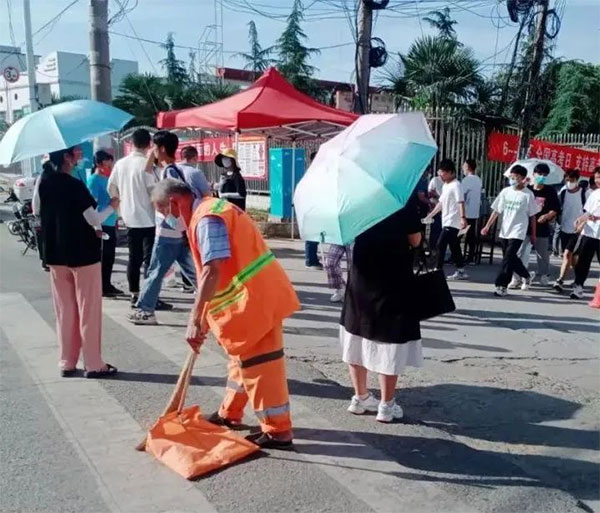 針對高考期間考場周邊人群密集、車流量大以及考場周邊環(huán)境復雜等情況,內(nèi)鄉(xiāng)項目安排機掃車輛、高壓沖洗車在考生到校前,不影響學生及家長交通的前提下,提前做好道路降溫除塵工作,在考點道路封閉前清掃完畢??荚囬_始后,全部改成人工清潔,在原有人員基礎(chǔ)上,再抽調(diào)保潔人員到各大考點,并明確責任路段,及時撿拾廢紙、白色垃圾等。考試結(jié)束后,及時組織車輛、人員對考點環(huán)境衛(wèi)生再次進行集中清理。