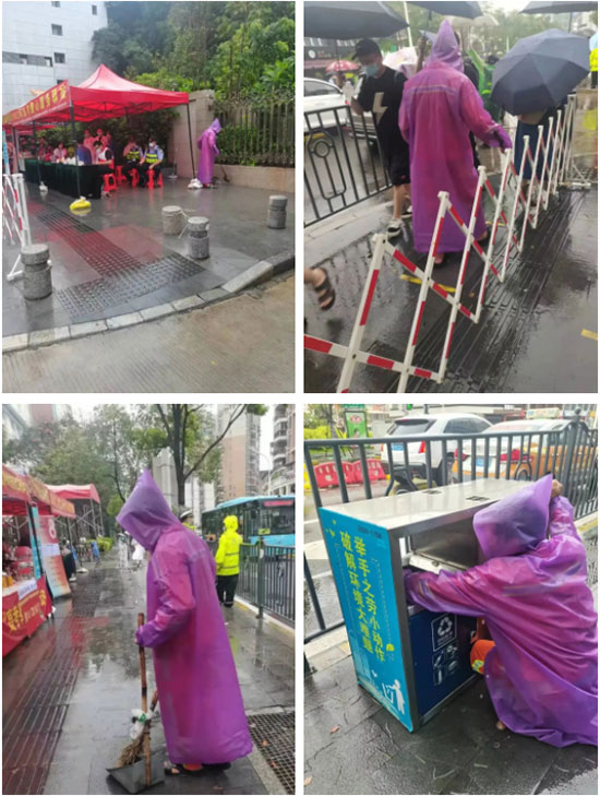 為進一步降低環(huán)衛(wèi)作業(yè)帶來的噪音影響,廈門龍環(huán)在考試期間全面采取人工作業(yè),為考場內(nèi)的考生提供安靜的考試環(huán)境;通過增派保潔人員、加大對考場周邊的巡回保潔力度,給考場外等候的家長們營造干凈舒適的環(huán)境條件。