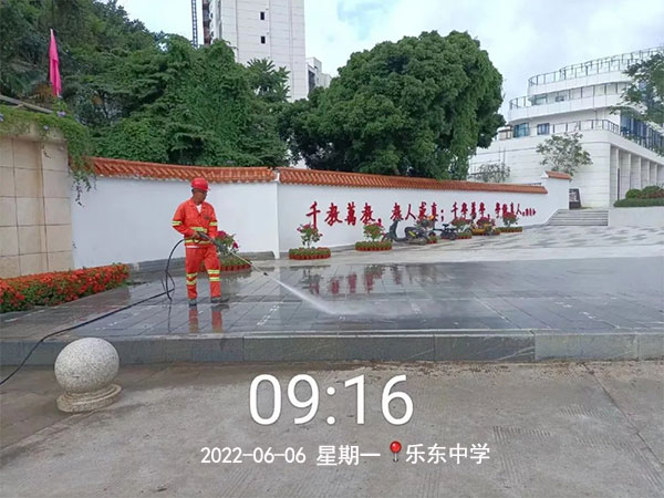 6月6日上午,公司安排水車在樂東中學校門口、花叢及人行橫道進行全面沖洗及人工擦拭,以潔凈的面貌迎接高考的到來。在樂東思源實驗高中安排養(yǎng)護車和小高壓車在校門口及學校周邊路面進行沖洗,加強和保障校園周邊的衛(wèi)生質(zhì)量。