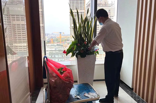 切實做好園區(qū)內(nèi)常態(tài)化消殺和復(fù)工前消殺工作,保持良好通風,針對園林綠化、玻璃外墻、大堂、電梯、衛(wèi)生間、空調(diào)出風口、垃圾房、公區(qū)門把手、開關(guān)等重點部位加大消毒頻次,切實按照要求,將各項防控措施落實落細,做到“不留死角、不漏盲區(qū)”。