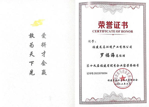 福龍馬集團副總裁兼環(huán)境服務事業(yè)部總經(jīng)理羅福海榮膺福建省優(yōu)秀企業(yè)家