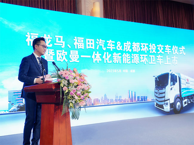 儀式現(xiàn)場,福龍馬集團高級副總裁查文鑫在致辭時表示,作為一家為客戶提供環(huán)境衛(wèi)生整體解決方案的企業(yè),福龍馬集團一直以來始終努力開發(fā)推廣新能源環(huán)衛(wèi)車輛,減少碳排放和能源消耗,致力于提高路面保潔效率和質(zhì)量,改善城市衛(wèi)生和美觀。福龍馬集團與福田汽車保持著長期的戰(zhàn)略合作,并一直與成都環(huán)境投資集團有著深遠的合作伙伴關系。