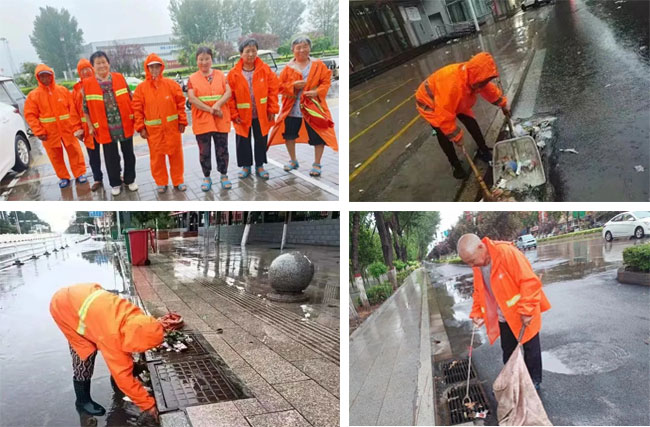 其中,成安福龍馬在汛前積極組織環(huán)衛(wèi)工人逐一疏通下水道、沙井口,清理堵塞的垃圾、落葉和淤泥,排除積水隱患,確保汛期地下管道排水順暢。