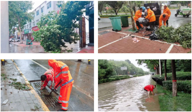 7月30日至31日,成安福龍馬沖鋒在防汛一線,就城區(qū)出現(xiàn)的樹枝斷裂、道路積水、進水口堵塞等突發(fā)情況,防汛應急分隊及保潔人員第一時間進行了處置。